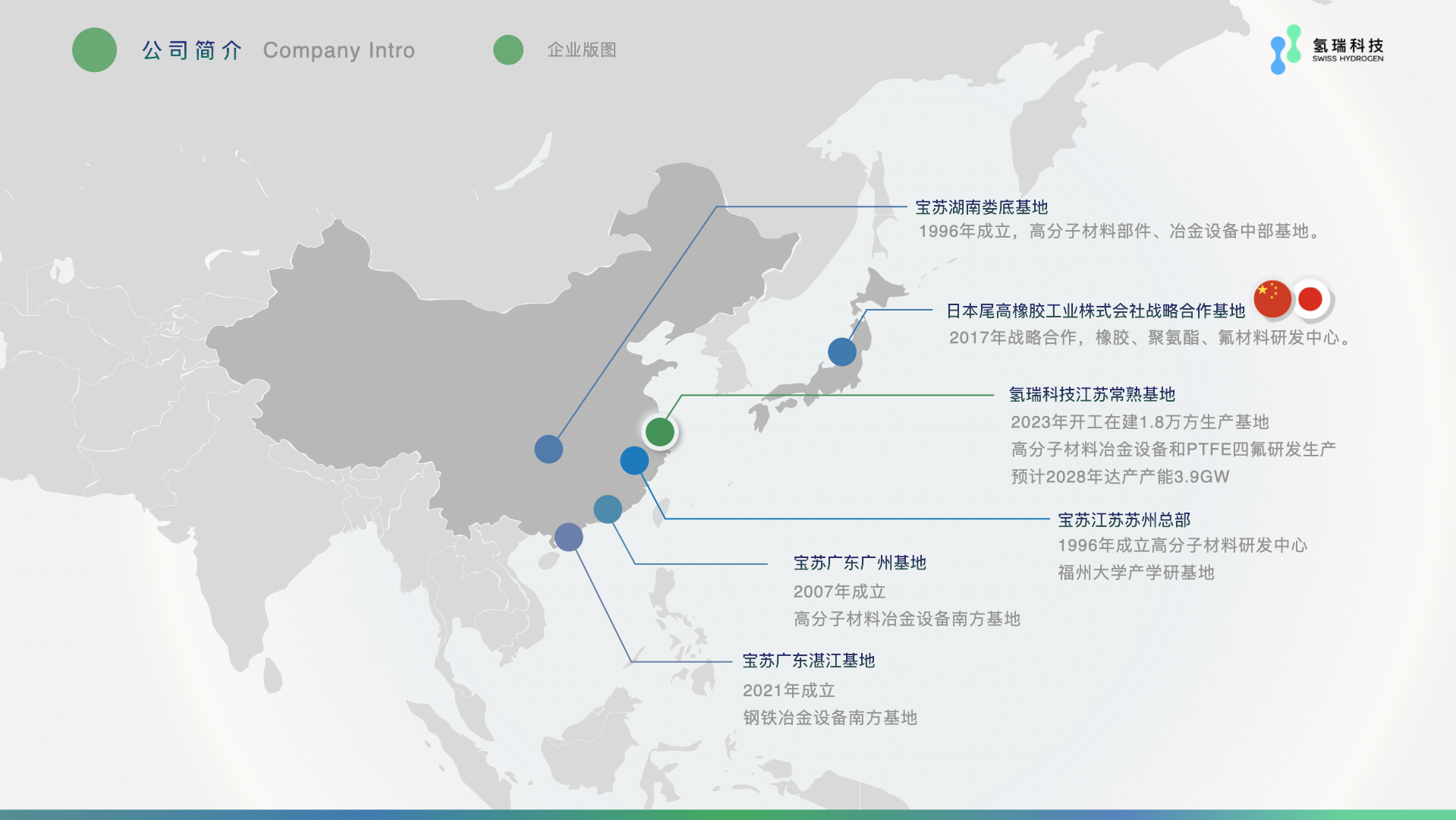 江苏氢瑞科技有限公司于2022年成立,由国内知名高分子材料及冶金胶辊制造企业宝苏矿冶设备有限公司投资,其企业总部、研发中心和生产基地位于江苏苏州。宝苏集团在湖南娄底、广东广州、广东湛江、江苏常熟设有生产基地,与日本行业领军企业日本尾高橡胶工业株式会社和福州大学在新材料工业化应用领域开展研发合作并建立长期战略伙伴关系,企业拥有雄厚的研发和迭代能力,获得超过40项专利;高新技术企业;专精特新小巨人等荣誉。江苏氢瑞专注研发生产高性能改性聚四氟乙烯密封垫片,年产能将超11万片,即1.6GW。氢瑞致力于帮助客户攻克技术难点,提供更优解决方案,推进材料创新,助力绿氢装备发展。